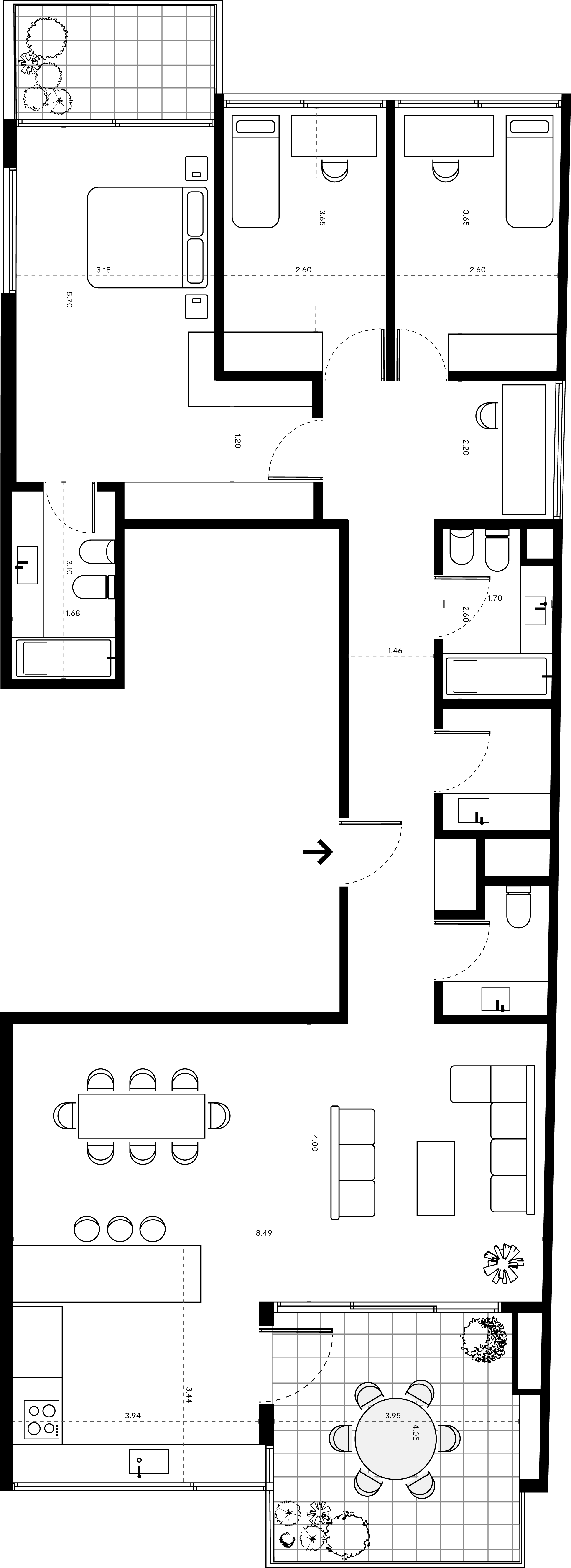 4 ambientes | 173m2 totales | 147m2 cubiertos | 24,04m2 semicubiertos | 25m2 balcón
